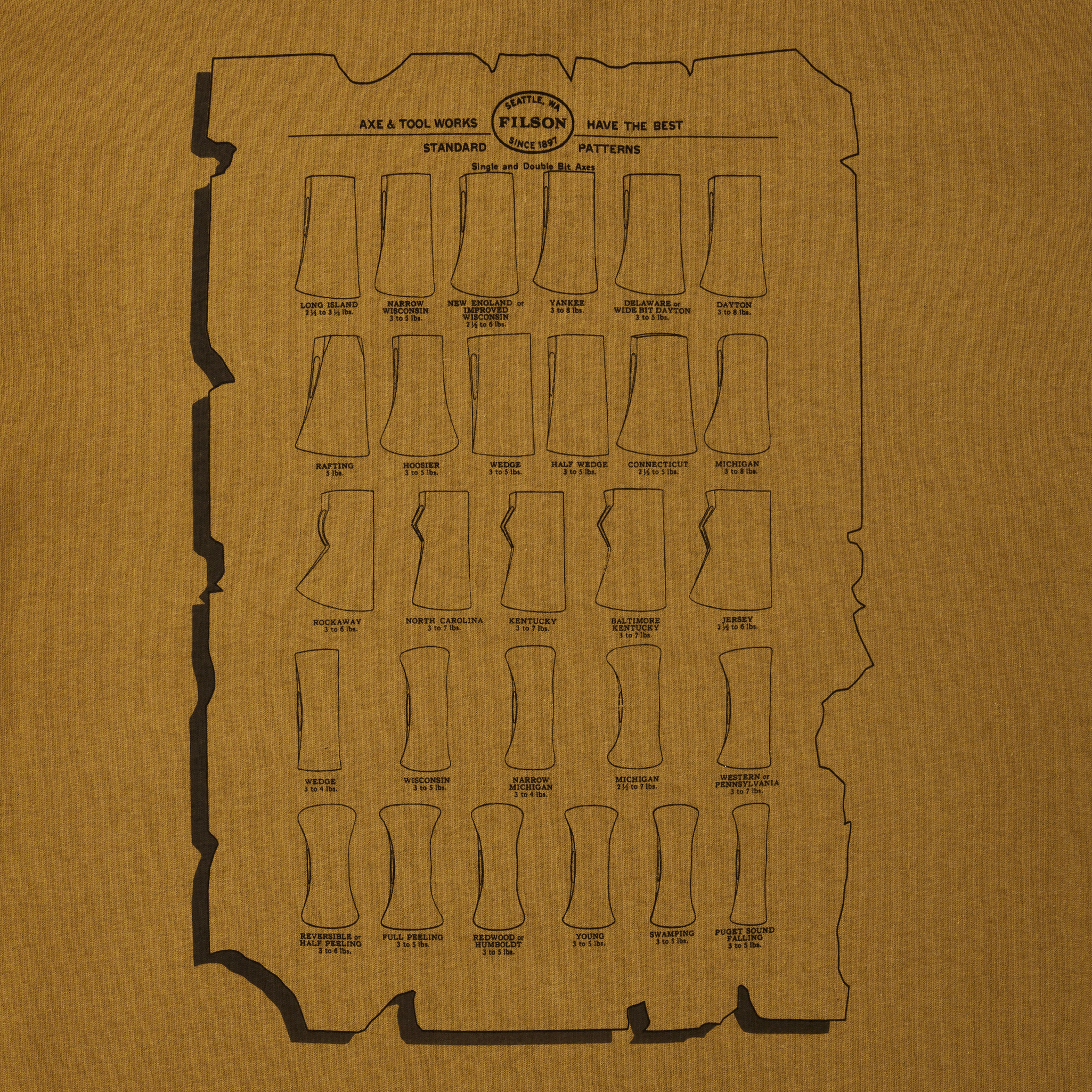 Pioneer Graphic T-shirt – Gold Ochre / Axe Patterns